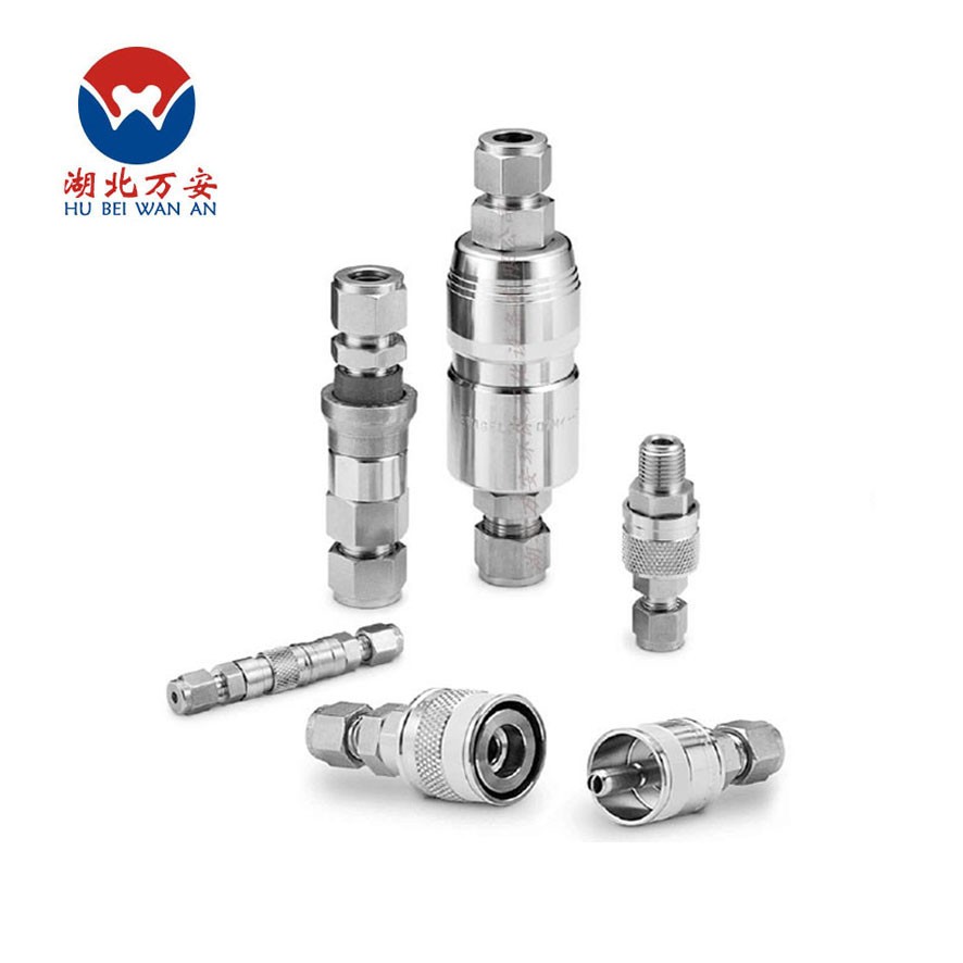 流體的壓力也是選定快速接頭的關鍵。油壓用的快速接頭是5.0Mpa(51kgf/cm²)-68.6Mpa(700kgf/cm²)之間形成系列化,相應于耐壓特性,快速接頭的構造也是不同的。